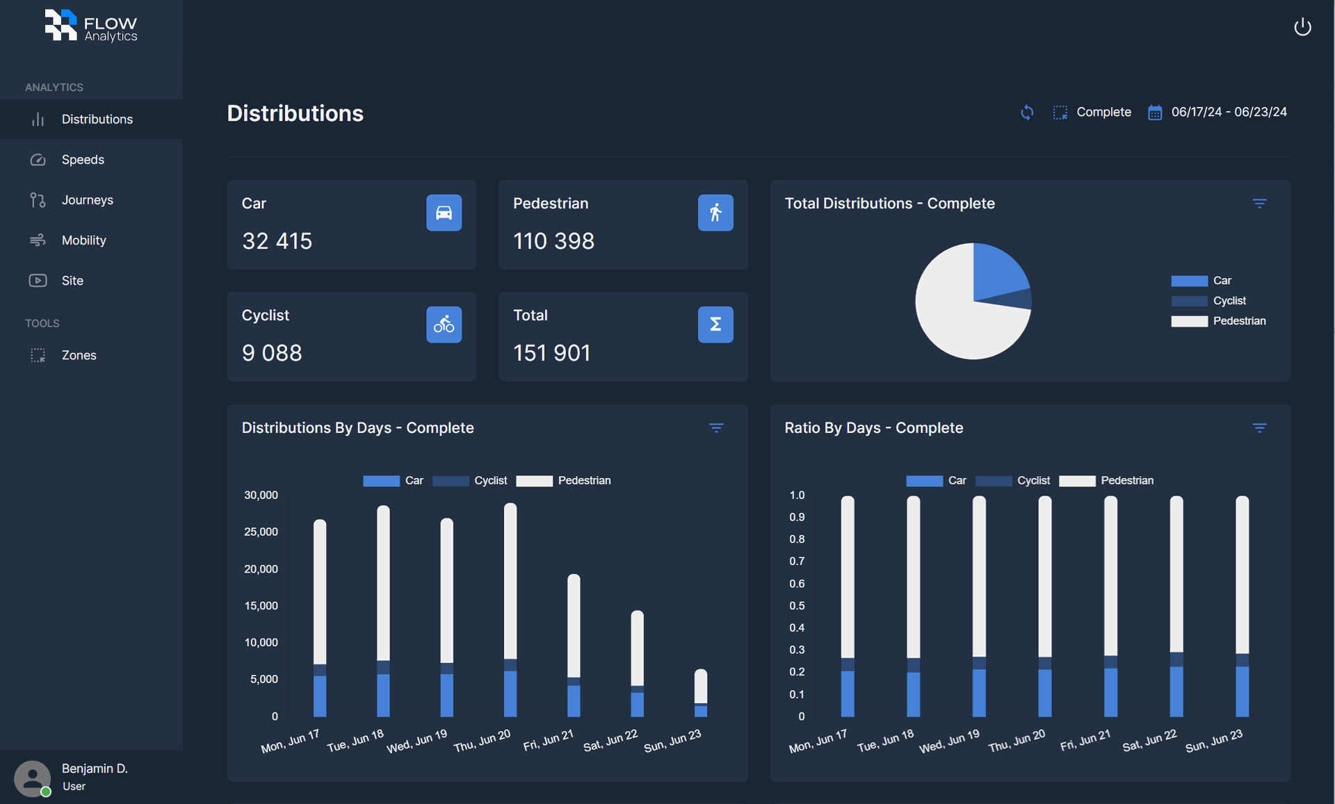 Movements are tracked down to the centimeter, enabling precise counts, classifications and trajectory analysis that manual methods and cameras cannot match.